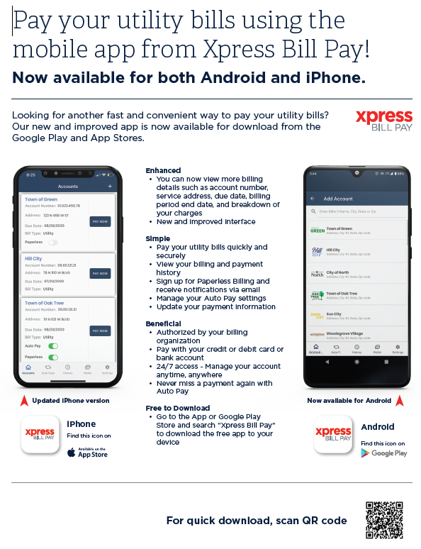 We have partnered with Xpress Bill Pay, the premier provider for online bill payment systems.