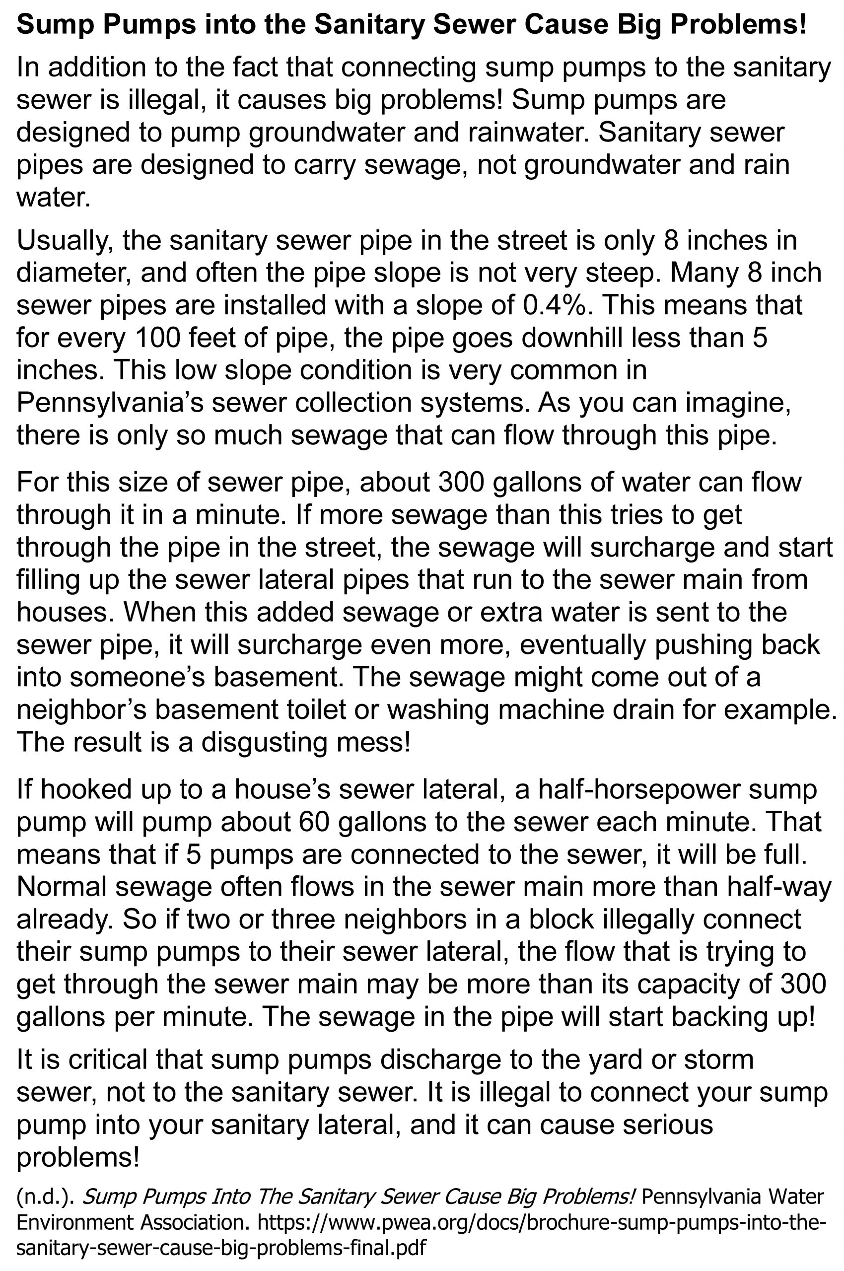 Sump Pumps into the Sanitary Sewer Cause Big Problems!